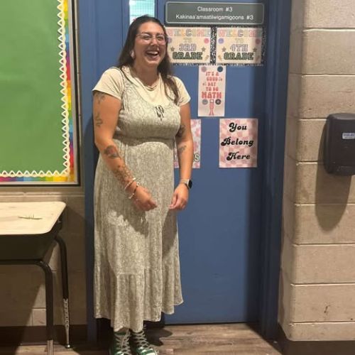 Fiona McKenna is an Anishinaabe educator and member of Gakino’amaage’s 2025 Cohort. This September, she began her first year of teaching in Big Grassy River First Nation, returning to her own Treaty Territory after graduating from Trent University’s Indigenous Bachelor of Education program.
